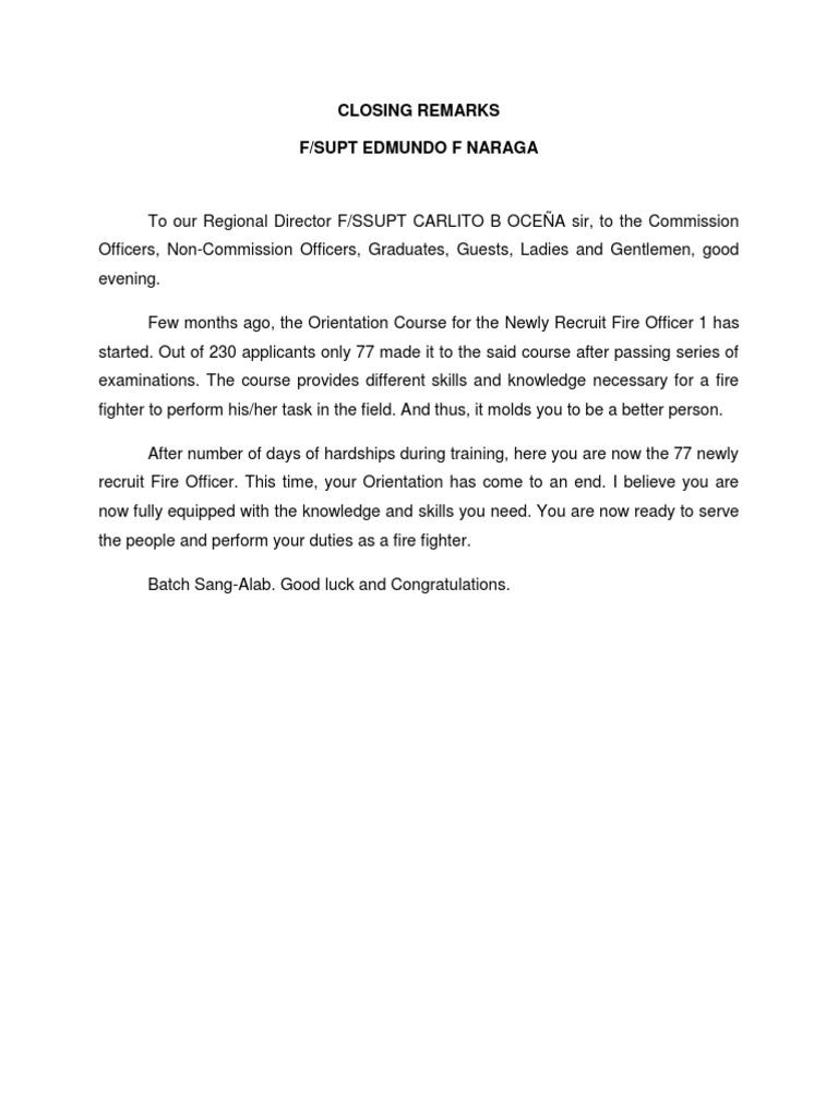 This picture beautifully captures the intricate details of Closing Remarks Sample - Fill Online, Printable, Fillable, Blank. If you’re interested in exploring this subject further, you can explore an outstanding representation right here, which is sure to inspire and inform. The colors, composition, and subject matter all come together to create a truly remarkable piece of art that you won’t want to overlook.