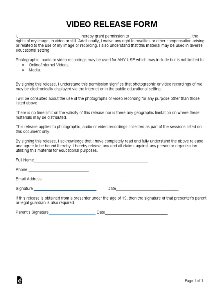 release form video forms template sample pdf